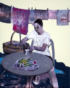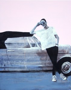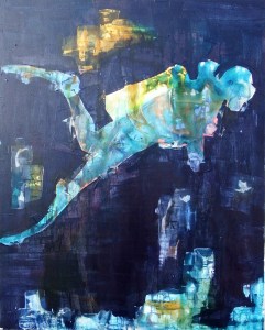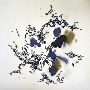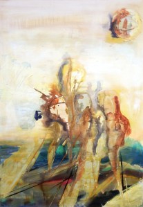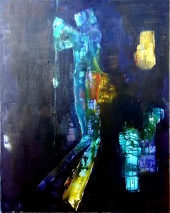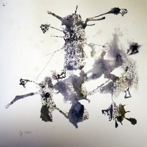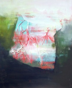 Beziehungen – Acryl und Mischtechnik auf Leinwand (Triptychon) – 3 x 100cm x 70cmAbtaucher I bis III – Acryl auf Leinwand – je 100cm x 80cmStruktur-Figur – Tinte und Tusche auf Papier – je 20cm x 20cmStruktur-Figur rot-grün – Mischtechnik auf Leinwand – je 50cm x 40cmSelbstbildnis – Heute lebe ich – Ein Platz an der Sonne – Acryl auf Leinwand
